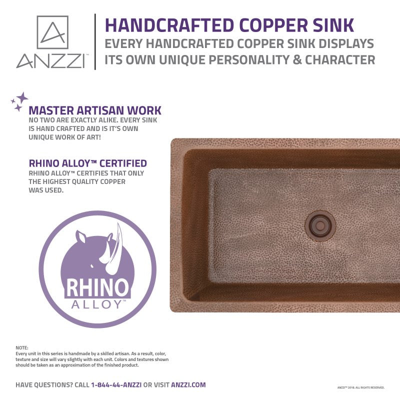 ANZZI presents the latest trending in modern antique Gilbert series  drop-in kitchen sink.  All ANZZI Gilbert kitchen sinks are handcrafted using only Rhino Alloy certified artisan copper.  This drop-in sink is perfect center piece for your kitchen.  Become a member of the ANZZI family and experience why Perfection is our Tradition.