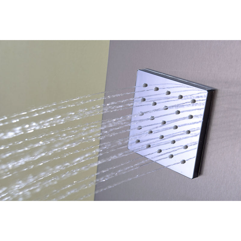 The clean lines and streamlined style of the ANZZI Niagara full body shower panel bring an avant-garde accent to any shower space. Laser cut from brushed stainless steel, the panel boasts two Acu-Stream jets that deliver a powerful body massage. A Heavy Rain shower head releases a soothing cascade of water from above, giving you the choice of a full-body shower or a direct stream. The Euro-Grip handheld sprayer has a reach of up to 60 inches, so you can direct water wherever you want it to go. Your exhilarating shower experience is easily controlled through two simple knobs.