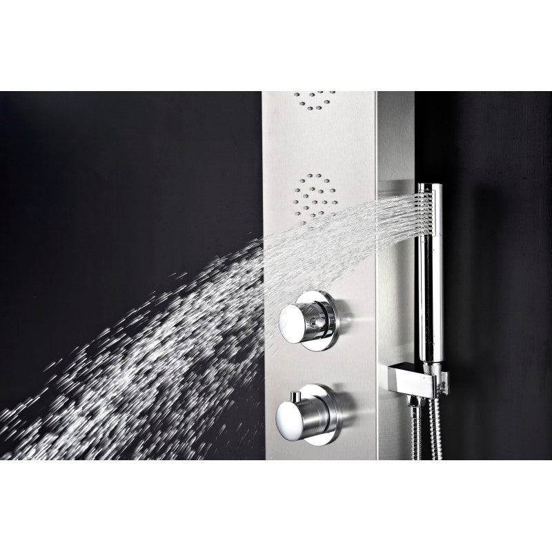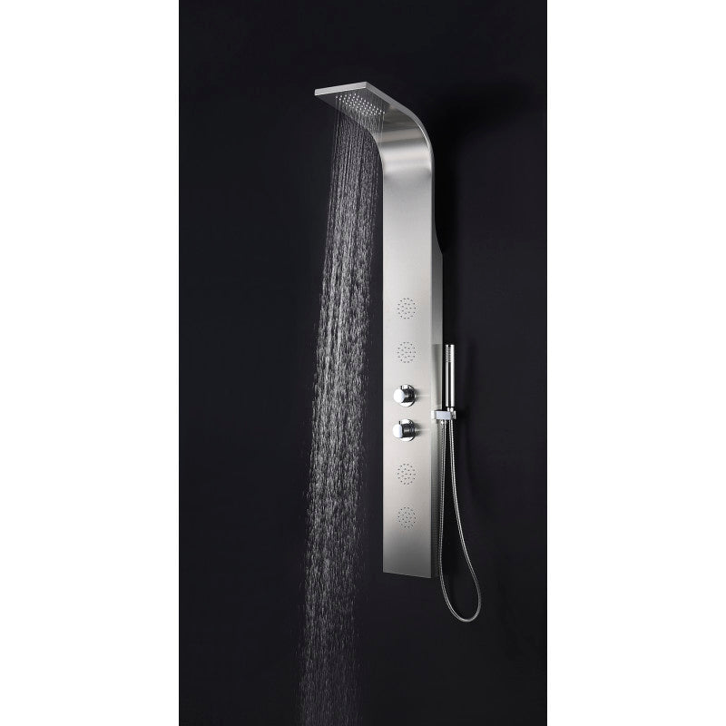 ANZZI is introducing the next level in personal jet stream shower technology with our latest series of elegant and reliably performing shower panels. The ANZZI full tower Prairie shower panel features a modern laser cut brushed 304 stainless steel frame equipped with 4 Acu-Stream body jets providing a powerful water stream to massage the body. ANZZI shower panels feature true flow Heavy Rain performance hanging shower heads and Euro-Grip hand held sprayer. All features are controlled through 2 chrome finish thermostatic and diverter controls.