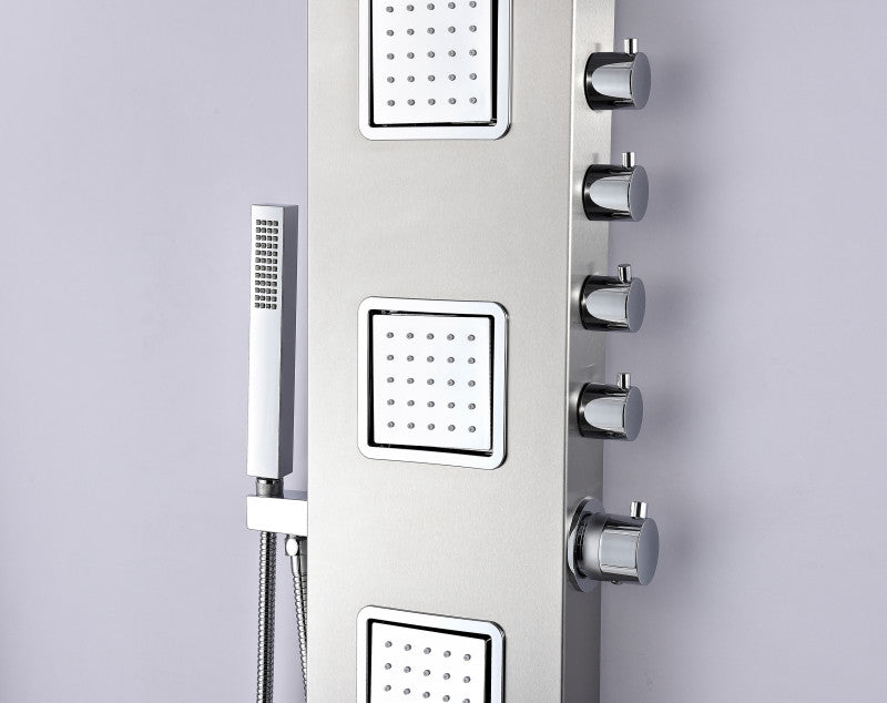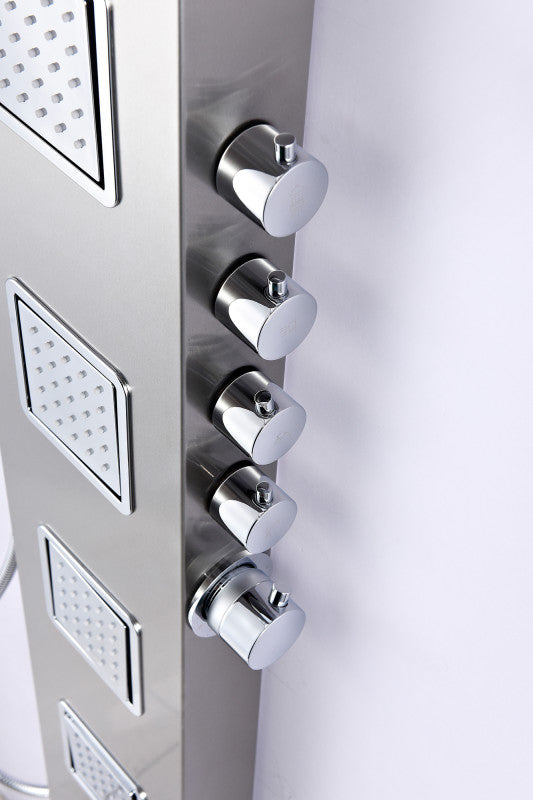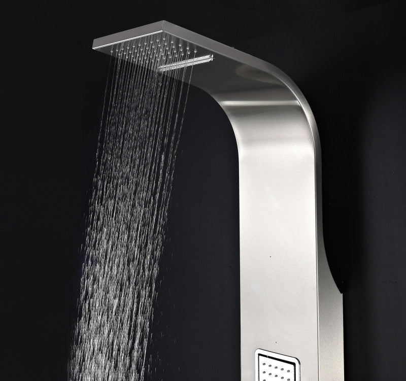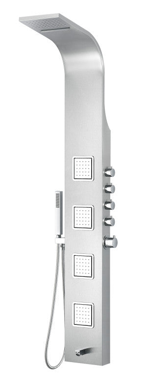 ANZZI is introducing the next level in personal jet stream shower technology with our latest series of elegant and reliably performing shower panels. The ANZZI full tower Mesa shower panel features a modern laser cut brushed 304 stainless steel frame equipped with 4 Acu-Stream body jets providing a powerful water stream to massage the body. ANZZI shower panels feature true flow Heavy Rain performance hanging shower heads and Euro-Grip hand held sprayer. All features are controlled through 5 chrome finish thermostatic and diverter controls.