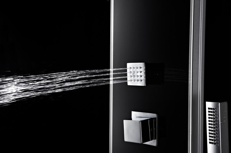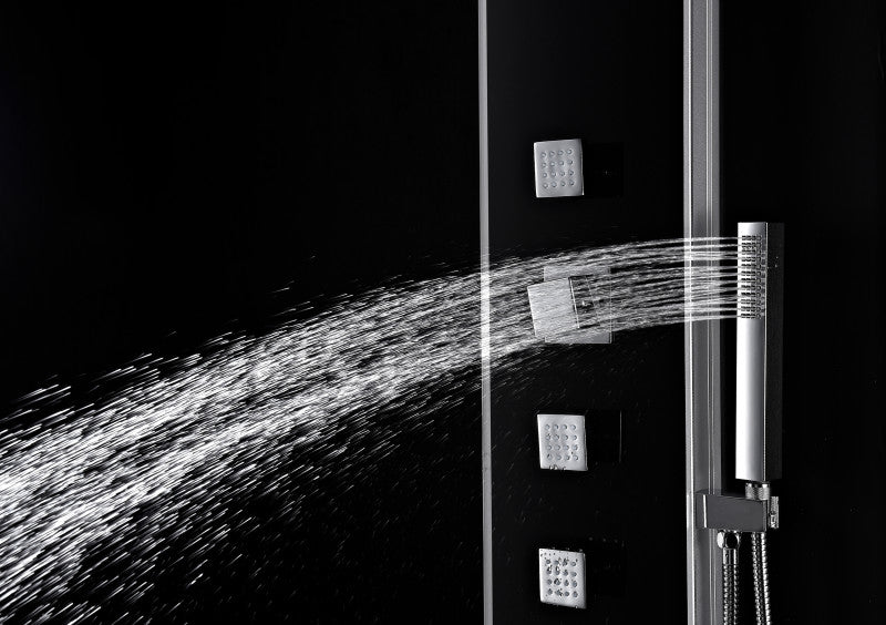 ANZZI is introducing the next level in personal jet stream shower technology with our latest series of elegant and reliably performing shower panels. The ANZZI full tower Llano shower panel features a modern laser cut tempered Deco-Glass frame equipped with 4 Acu-Stream body jets providing a powerful water stream to massage the body. ANZZI shower panels feature true flow Heavy Rain performance hanging shower heads and Euro-Grip hand held sprayer. All features are controlled through 2 chrome finish thermostatic and diverter controls.