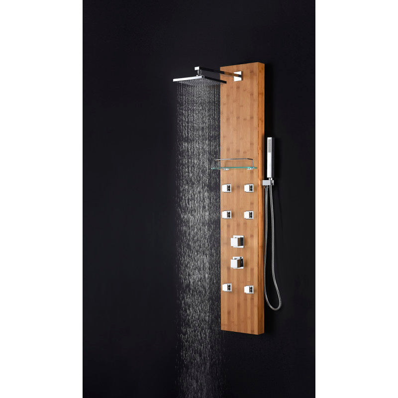 Crane 60 in. Full Body Shower Panel with Heavy Rain Shower and Spray Wand in Natural Bamboo