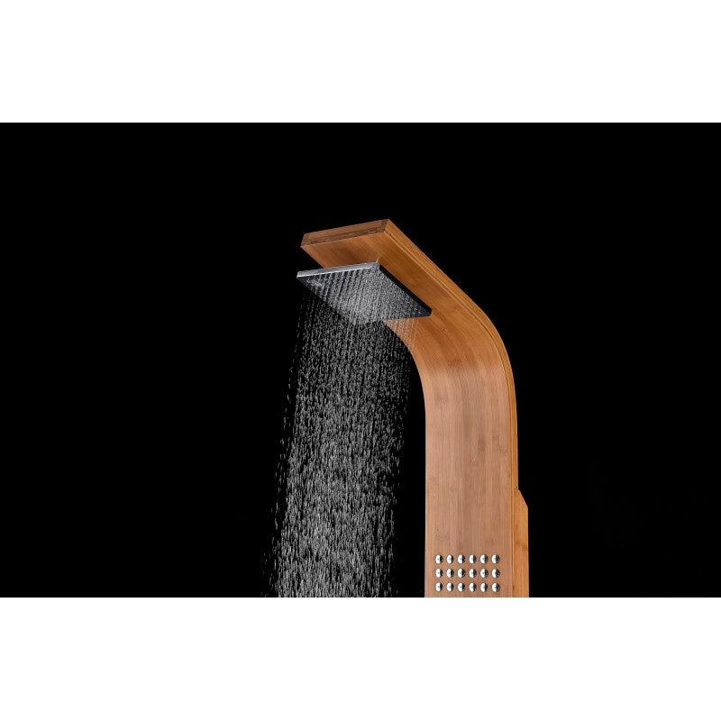 ANZZI is introducing the next level in personal jet stream shower technology with our latest series of elegant and reliably performing shower panels. The ANZZI full tower Crane shower panel features a modern laser cut natural bamboo frame equipped with 3 Acu-Stream body jets providing a powerful water stream to massage the body. ANZZI shower panels feature true flow Heavy Rain performance hanging shower heads and Euro-Grip hand held sprayer. All features are controlled through 2 chrome finish thermostatic and diverter controls.