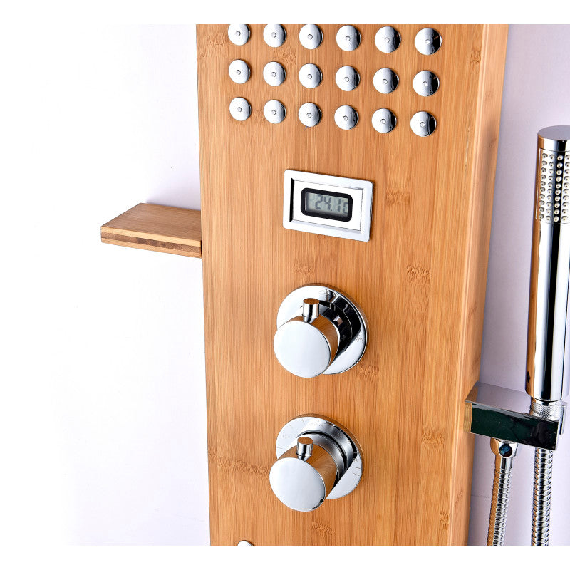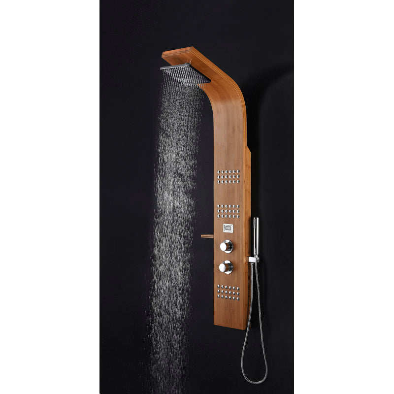 Crane 60 in. Full Body Shower Panel with Heavy Rain Shower and Spray Wand in Natural Bamboo