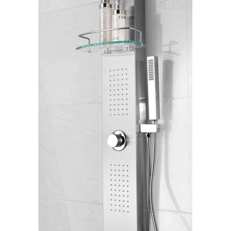 The ANZZI full body Coastal shower panel features a modern laser cut brushed 304 stainless steel body with 2 Acu-Stream body jets providing a relaxing yet powerful water stream to massage the body. The Heavy Rain shower head hangs overhead releasing a steady torrent of soothing water from above. And always positioned at the column's flank is the Euro-Grip hand held sprayer with free reign reach of up to 44 inches. Retro fit installation.
