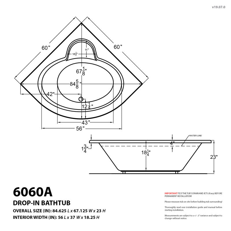 Atlantis Whirlpools Alexandria 60 x 60 Corner Air Jetted Bathtub